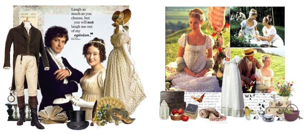 A segunda dica é que no site da Polyvore (onde podemos criar nossos próprios estilos com roupas, sapatos e acessórios de marca), Natallie encontrou algumas montagens sobre Austen e os filmes baseados em seus livros. Nesse site, as pessoas fazem montagens de fotos de celebridades, personagens para combinar com as roupas. Natallie está cadastrada no site e acabou adicionando todas as coleções que encontrou sobre Austen e seus personagens. O link para perfil de Natallie é esse aqui. Abaixo, algumas imagens criadas por fãs do mundo inteiro: