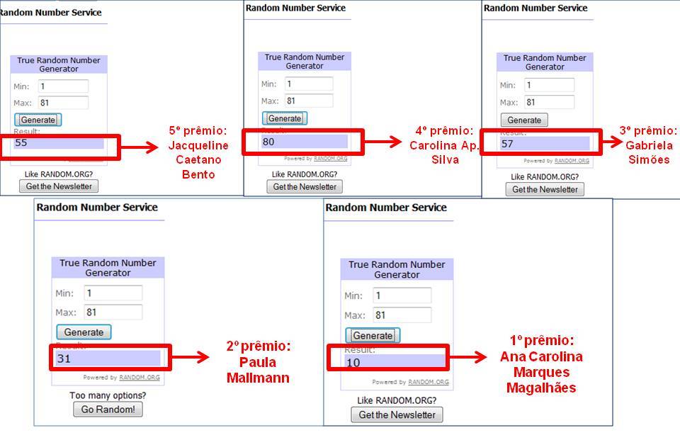 Os vencedores do Sorteio de Natal 2011 – foram os seguintes:
