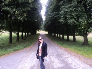 Logo quando a gente entra na propriedade, andamos por um lindo e extenso caminho que vai dar na casa. O caminho é lindo, tem muitas árvores. Ao chegar na casa, entramos para conhecê-la. Podemos visitar alguns cômodos e olhar a vista da janela para aqueles jardins perfeitos que foram mostrados no filme.