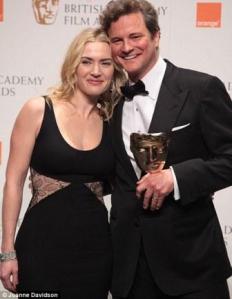 Colin Firth, o eterno Mr. Darcy de Orgulho e Preconceito de 1995, acompanhado de sua esposa Livia. O ator foi indicado pelo seu papel em A Single Man.