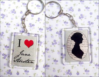 chaveiros diferentes, pra começo fiz vários modelos de Jane Austen e afins (tb North e Sul e Jane Eyre), mas pretendo fazer de muitos outros temas, estou cheia de ideias e fora que posso fazer por encomenda, do que a pessoa preferir. Vejam se gostam, se quiserem comprar é só entrar em contato e se puderem me ajudar a divulgar eu agradeço. Em breve acho que farei uma lojinha no site Elo7, caso os