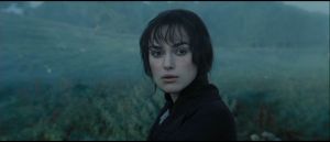 scuridão inclusive acentuada pelas vestimentas escuras de ambos – acaba por remeter a um contexto posterior, vitoriano, sendo bem mais adequada aos arroubos e romantismo das irmãs Brontës, por exemplo, que a contenção de Austen. Esses recortes servem para mostrar a escolha ideológica por trás da adaptação. Se, como diz Dudley Andrew, “adaptação é apropriação de significado de um texto anterior” (e um texto pode ter significados variados, ficando a critério do cineasta e roteirista dar maior visibilidade a um ou a outro), fica evidente que a escolha empreendida, neste caso, tentou conciliar a crítica social de Austen à história pessoal de Lizzy e Darcy; porém, ao romantizar (principalmente em termos visuais) a narrativa privada, o filme perdeu a chance de, por exemplo, aprofundar as relações inseparáveis entre o público e o privado em Austen. No entanto, talvez como certo consolo, o final do filme acaba por resgatar, mais uma vez, a tonalidade contida de Austen, através da ausência do beijo e da conclusão do filme sem a cena do(s) casamento(s). De modo que talvez a melhor definição para esta adaptação seja “Hollywood sem beijo”.