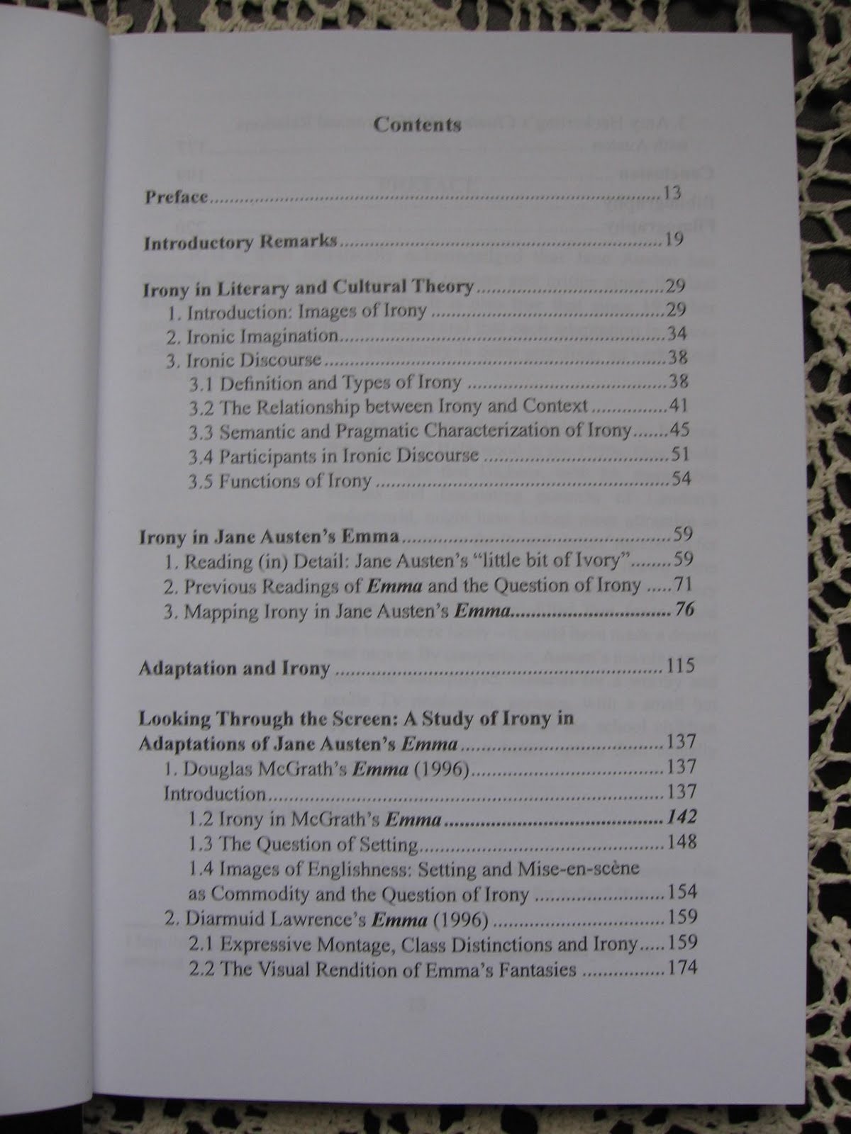O livro é uma coletânea de artigos focados especialmente em Orgulho e Preconceito, A Abadia de Northanger e Mansfield Park, incluindo excelentes análises acerca do papel feminino nas obras, o uso de recursos metalinguísticos, e entre os livros e as adaptações que foram feitas dos mesmos.
