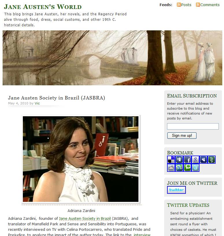 Não percam hoje às 21:30 na Globo News, a segunda parte do Programa Espaço Aberto Literatura sobre Jane Austen!