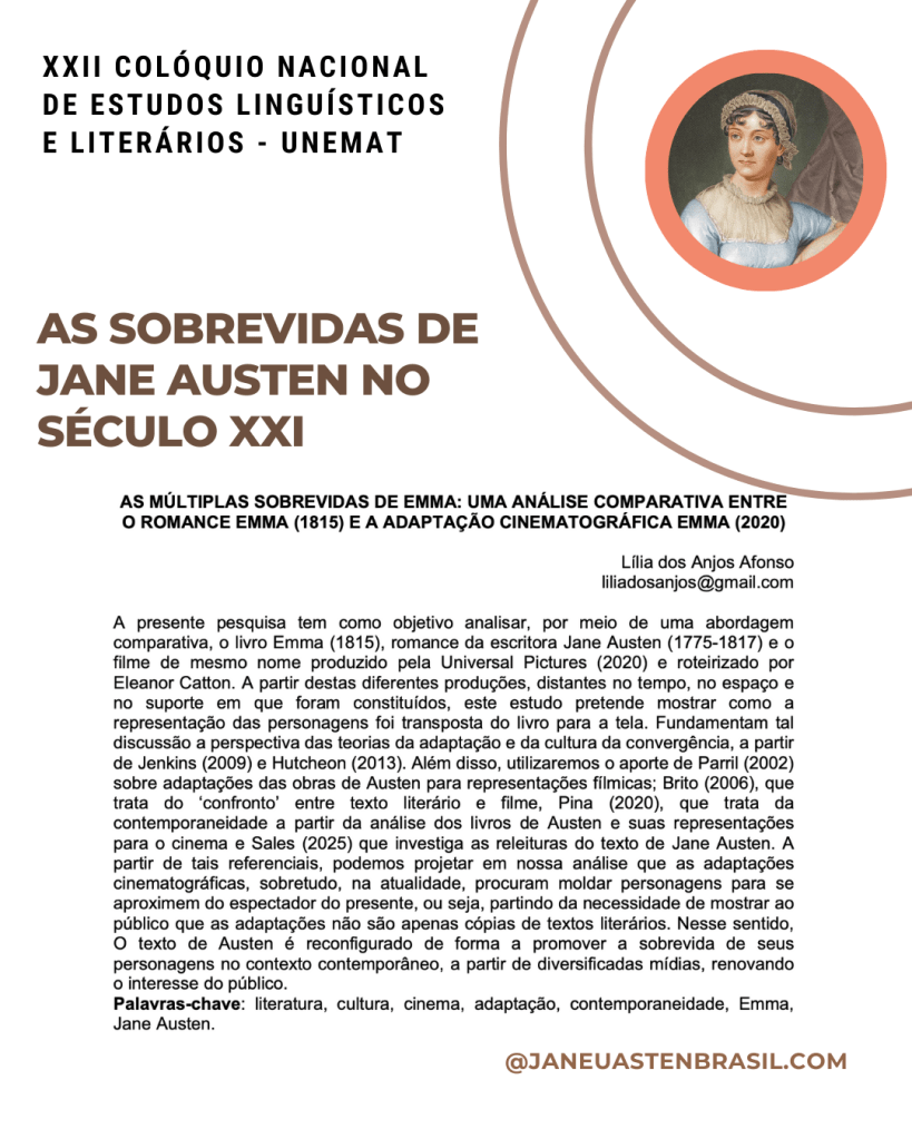 A comemoração dos 250 anos de nascimento de Jane Austen convida o público brasileiro a uma jornada literária que atravessa o país, revelando a amplitude da recepção, leitura e recriação da autora em nosso contexto cultural. O evento “Celebrando os 250 anos de Jane Austen de norte a sul no Brasil” propõe um panorama abrangente das atividades que têm mantido viva a presença de Austen no imaginário nacional, com destaque para os pesquisadores brasileiros e as iniciativas promovidas pela Jane Austen Sociedade do Brasil (JASBRA) desde sua fundação.