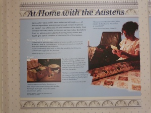 Site o blog do museu, escrito por minha amiga Julie Wakefield, a vida em Chawton era muito tranquila o que permitiu Austen rever e escrever seus seis livros. Segundo Julie, o foco do museu é mostrar a vida cotidiana das Austen, com destaque para assuntos relacionados à moda, costura, alimentação, visitas e saúde.