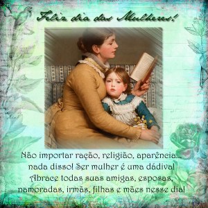 O dia das mulheres é um dia para lembrar de nós, mas receio que muitos confundem com apenas presentes, flores e bombons. Eu gostaria muito que o nosso papel enquanto mulheres, mães, esposas, namoradas, filhas, netas, amigas tivesse mais que uma simples data para celebração. Somos pessoas que possuem qualidades e defeitos, inteligência e sabedoria. Como dia uma querida professora, o dia das mulheres é todos os dias, não quero fazer parte de uma minoria, SOMOS 50% do PLANETA, e isso é fato! Felizes dias das mulheres para todas!