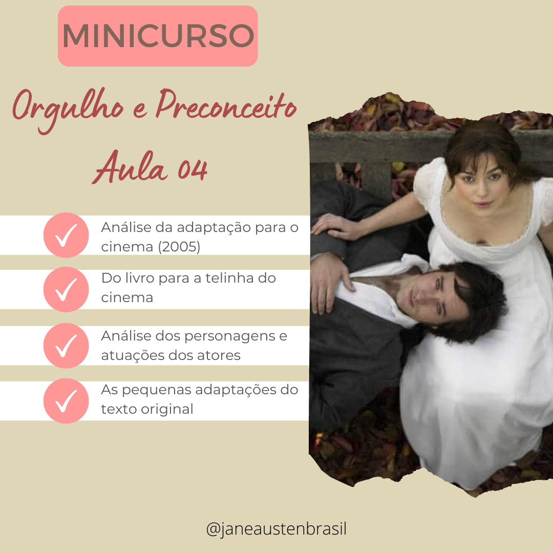 Sobre o filme “Orgulho e Preconceito”, adaptação do livro de mesmo nome de Jane Austen: Inglaterra, 1797. As cinco irmãs Bennet – Elizabeth (Keira Knightley), Jane (Rosamund Pike), Lydia (Jena Malone), Mary (Talulah Riley) e Kitty (Carey Mulligan) – foram criadas por uma mãe (Brenda Blethyn) que tinha fixação em lhes encontrar maridos que garantissem seu futuro. Porém Elizabeth deseja ter uma vida mais ampla do que apenas se dedicar ao marido, sendo apoiada pelo pai (Donald Sutherland). Quando o sr. Bingley (Simon Woods), um solteiro rico, passa a morar em uma mansão vizinha, as irmãs logo ficam agitadas. Jane logo parece que conquistará o coração do novo vizinho, enquanto que Elizabeth conhece o bonito e esnobe sr. Darcy (Matthew Macfadyen). Os encontros entre Elizabeth e Darcy passam a ser cada vez mais constantes, apesar deles sempre discutirem.