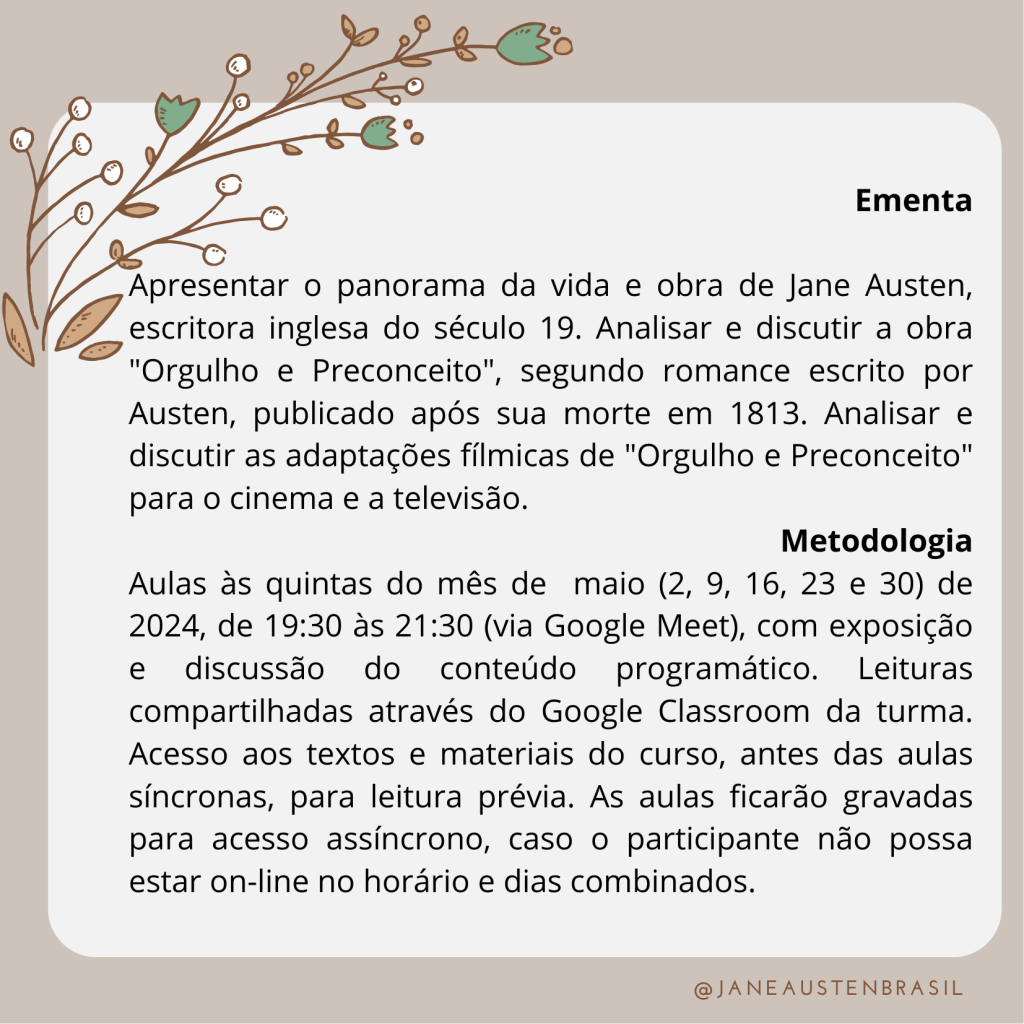 Mediação do debate: Profa. Adriana dos Santos Sales (DELTEC), presidente da Jane Austen Sociedade do Brasil.