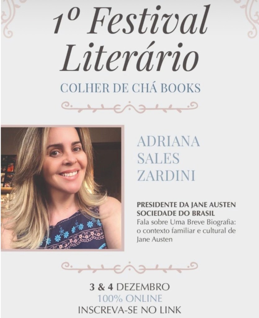 Organização: @colherdechabooks Apoio: @janeaustenbrasil Adriana Sales, Presidente da @janeaustenbrasil – Sociedade Jane Austen Brasil, abre nosso evento com uma timeline dos fatos mais importantes na vida da escritora Jane Austen.