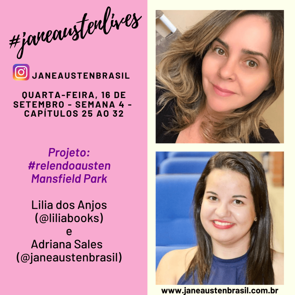 Ministrante: Adriana Sales é Doutora em Estudos Linguísticos pela Faculdade de Letras da Universidade Federal de Minas Gerais. É especialista em Jane Austen pela Universidade de Oxford (2010). Atualmente é professora de inglês e suas literaturas no Ensino Médio e Graduação em Letras do Centro Federal de Educação Tecnológica de Minas Gerais (CEFET-MG). É fundadora e presidente da Jane Austen Sociedade do Brasil desde 2008. Tradutora de Mansfield Park (2009), Razão e Sensibilidade (2010) e Emma (2012).
