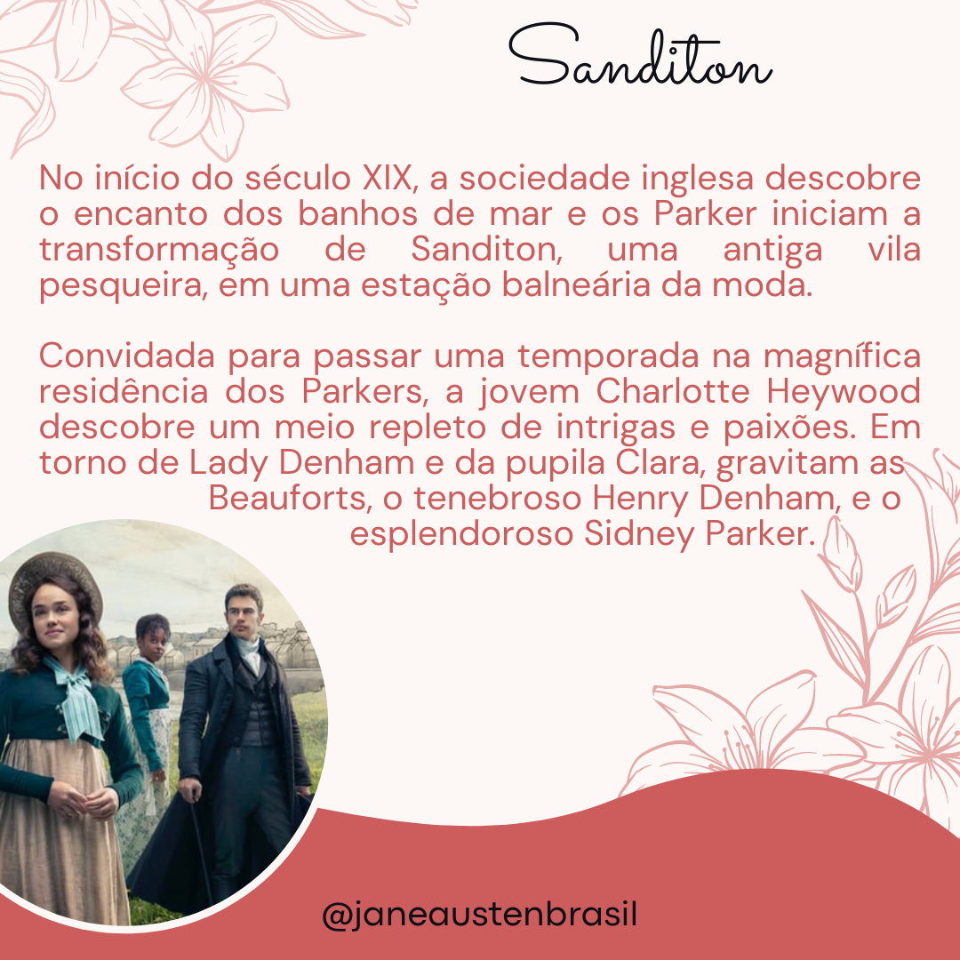 Sanditon foi baseado no livro de mesmo nome da autora Jane Austen, mas é um romance que ela deixou inacabado (escreveu apenas 11 capítulos) e isso de certa maneira abre muitos caminhos para os personagens e foi exatamente o que o roteirista Andrew Davies (que também roteirizou Orgulho e Preconceito de 1995) fez.