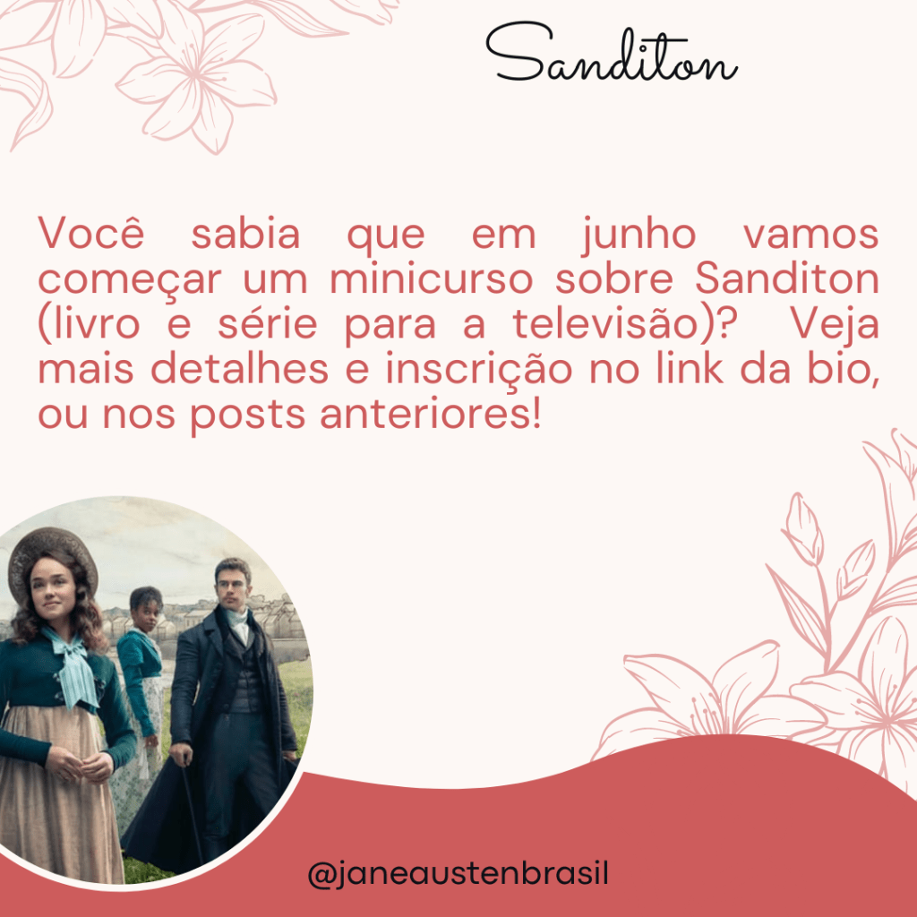 Vamos embarcar em mais um minicurso sobre as obras de #janeausten ? Desta vez, o livro escolhido foi #sanditon ❤️ que também tem adaptação para a televisão em 3 temporadas. Informações e inscrições estão no link aqui!