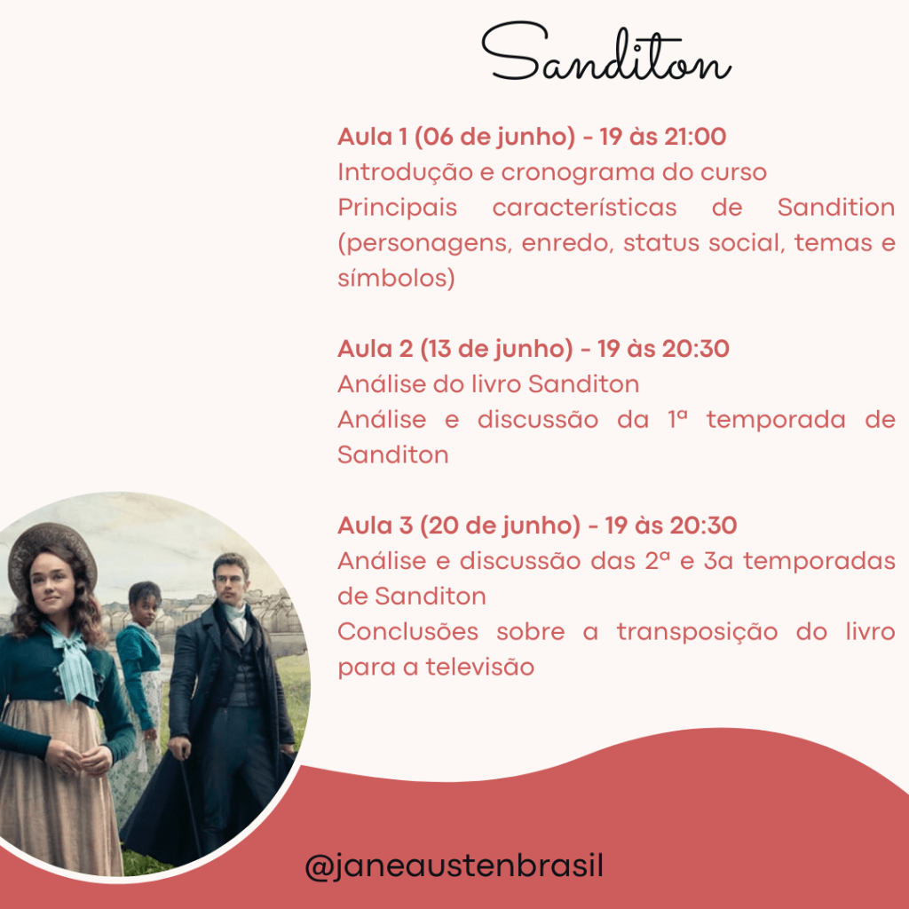No mês de junho vamos ler e discutir o livro Sanditon e adaptação para a série de televisão (3 temporadas). Faça sua inscrição AQUI.