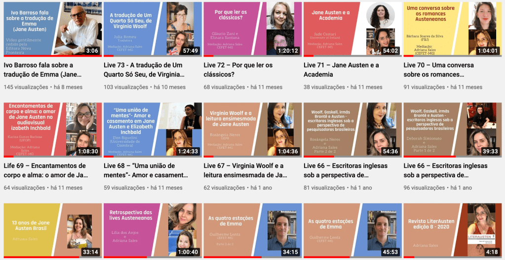 Os links para as lives estão em ordem crononlógica e estão disponíveis no nosso canal no Youtube. Abaixo de cada imagem há um link para a respectiva live. Veja aqui a lista de todas a lives do projeto #janeaustenlives.